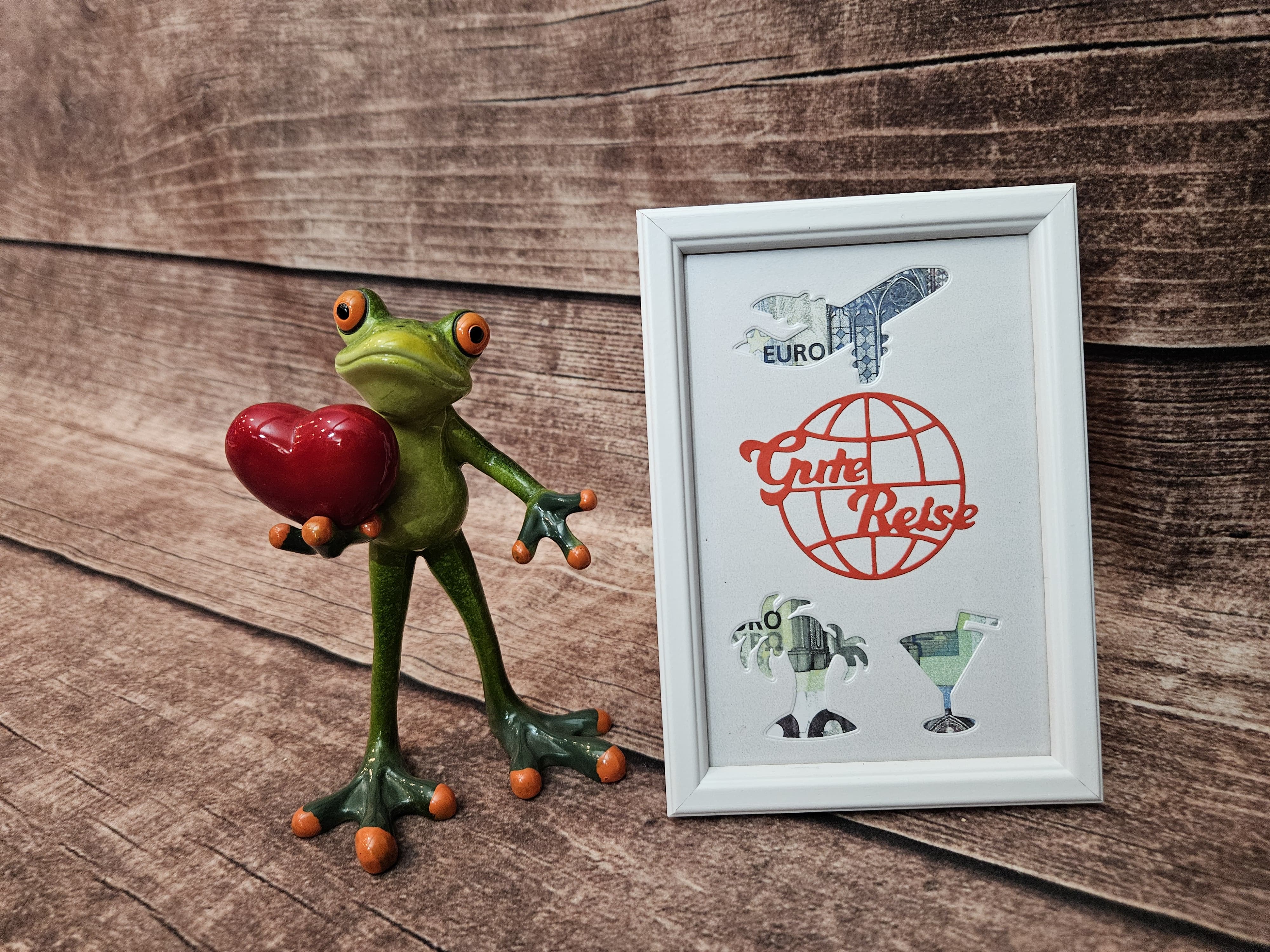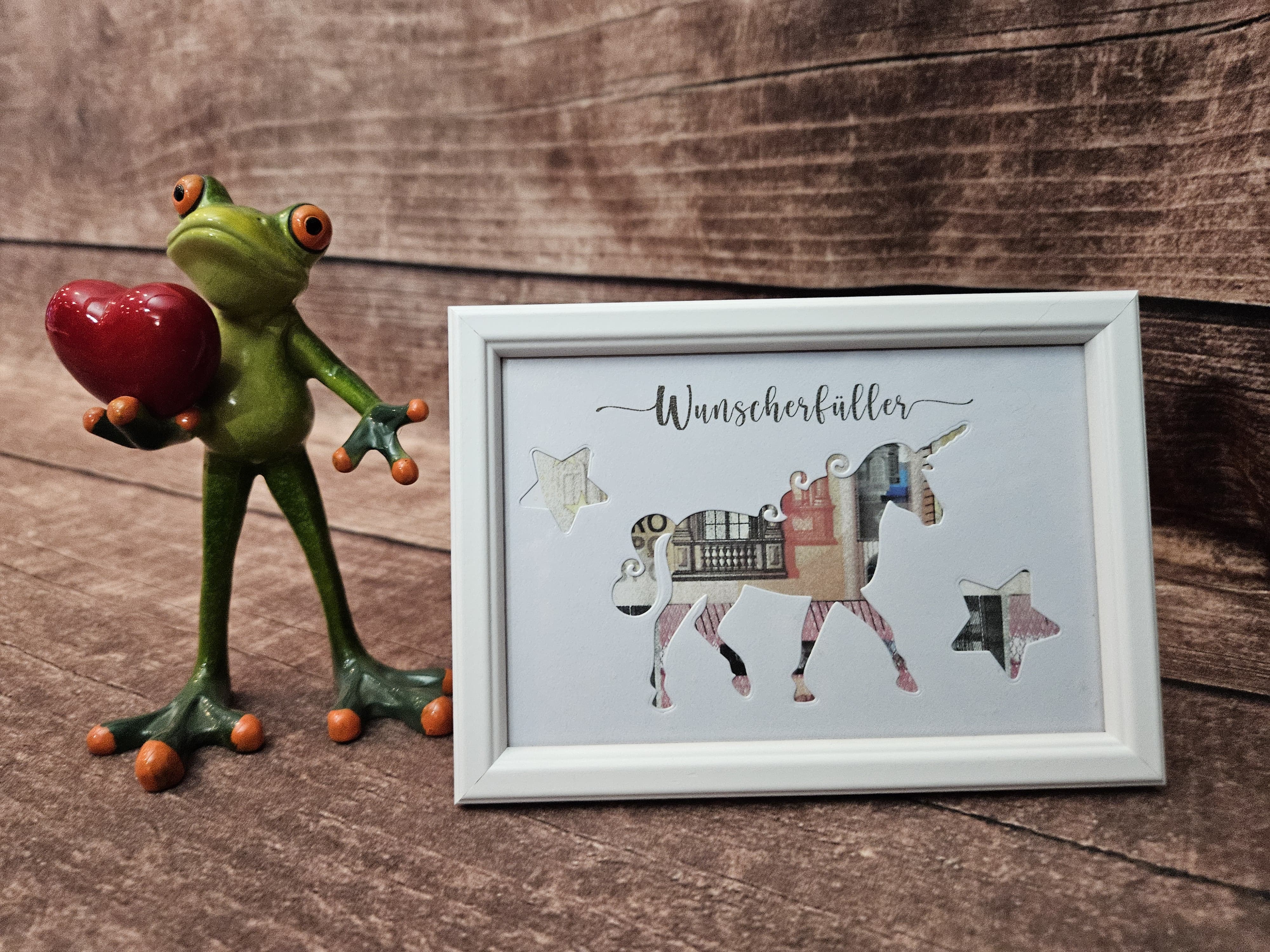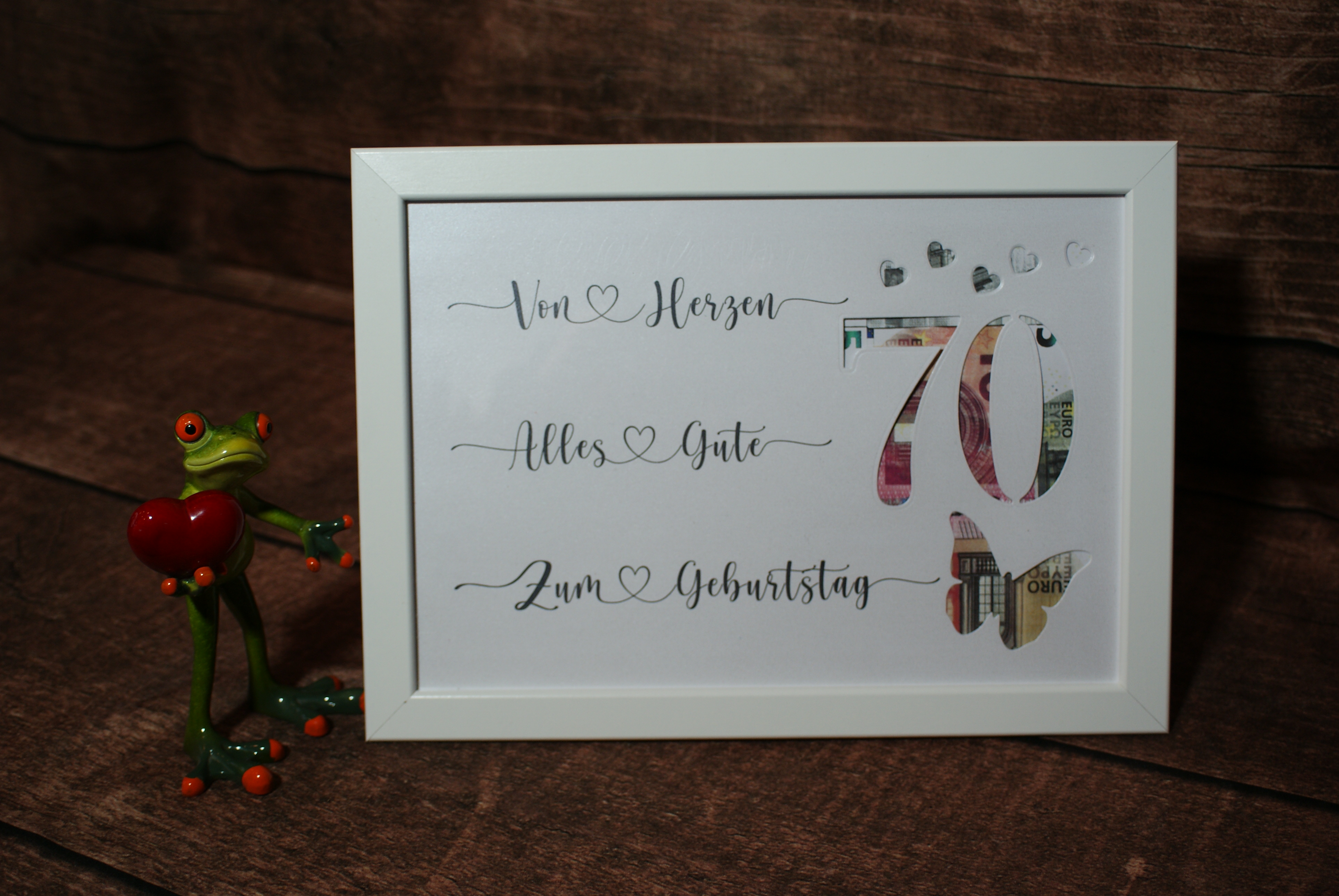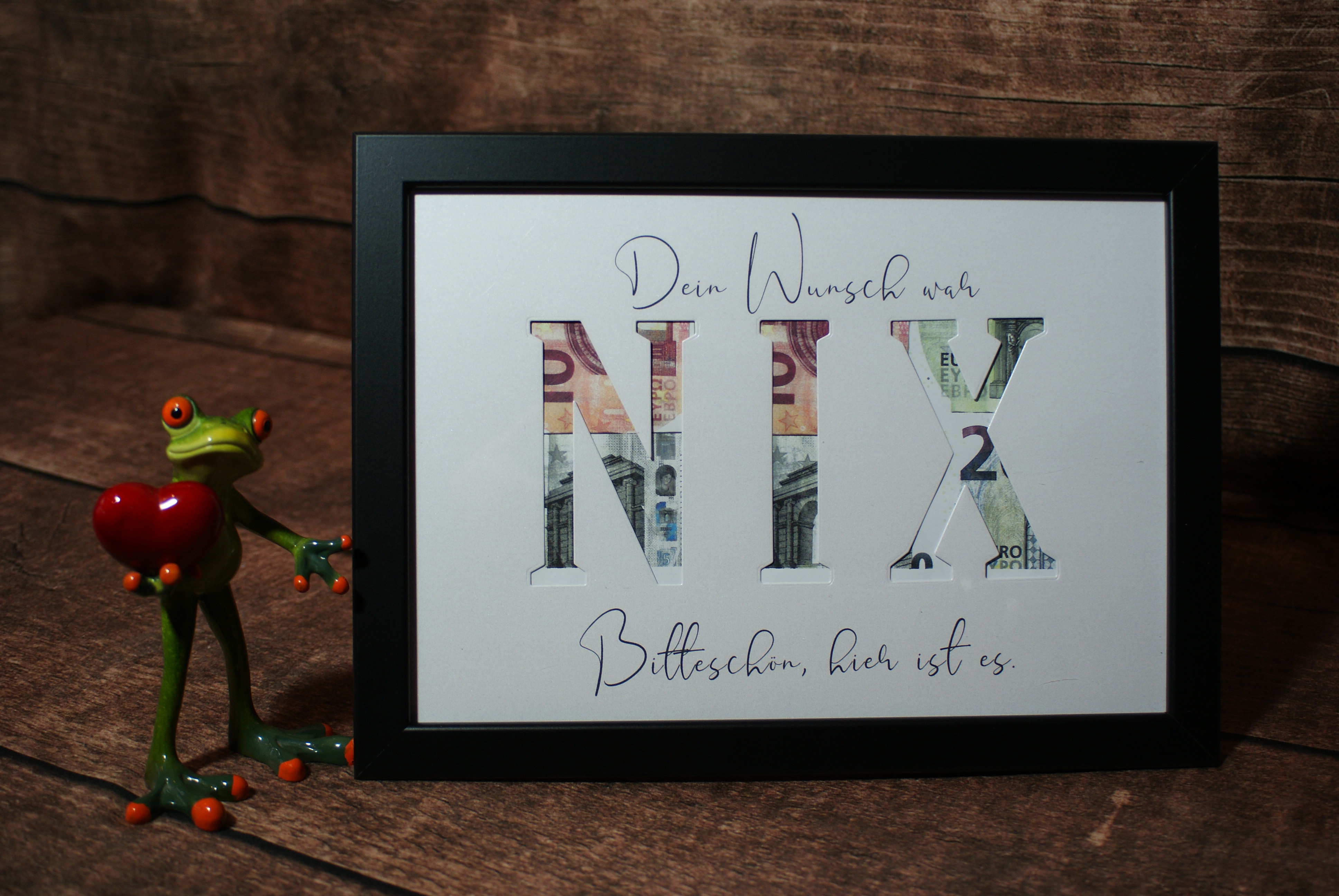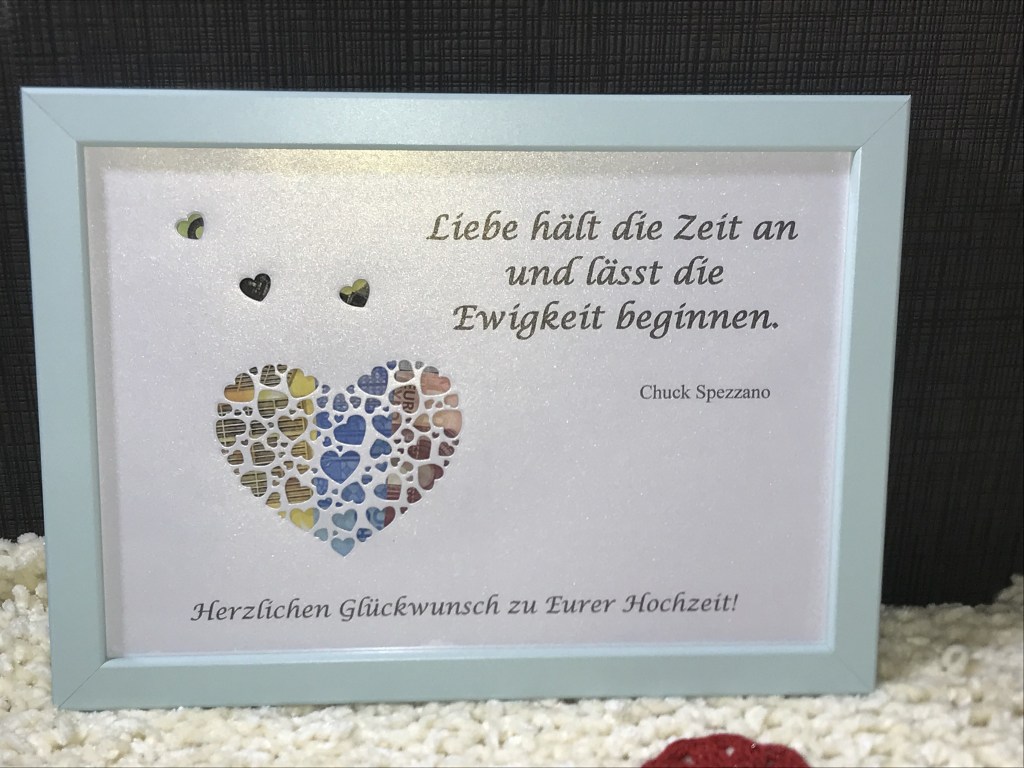 Den Bilderrahmen kann die beschenkte Person später mit einem Bild bestücken.