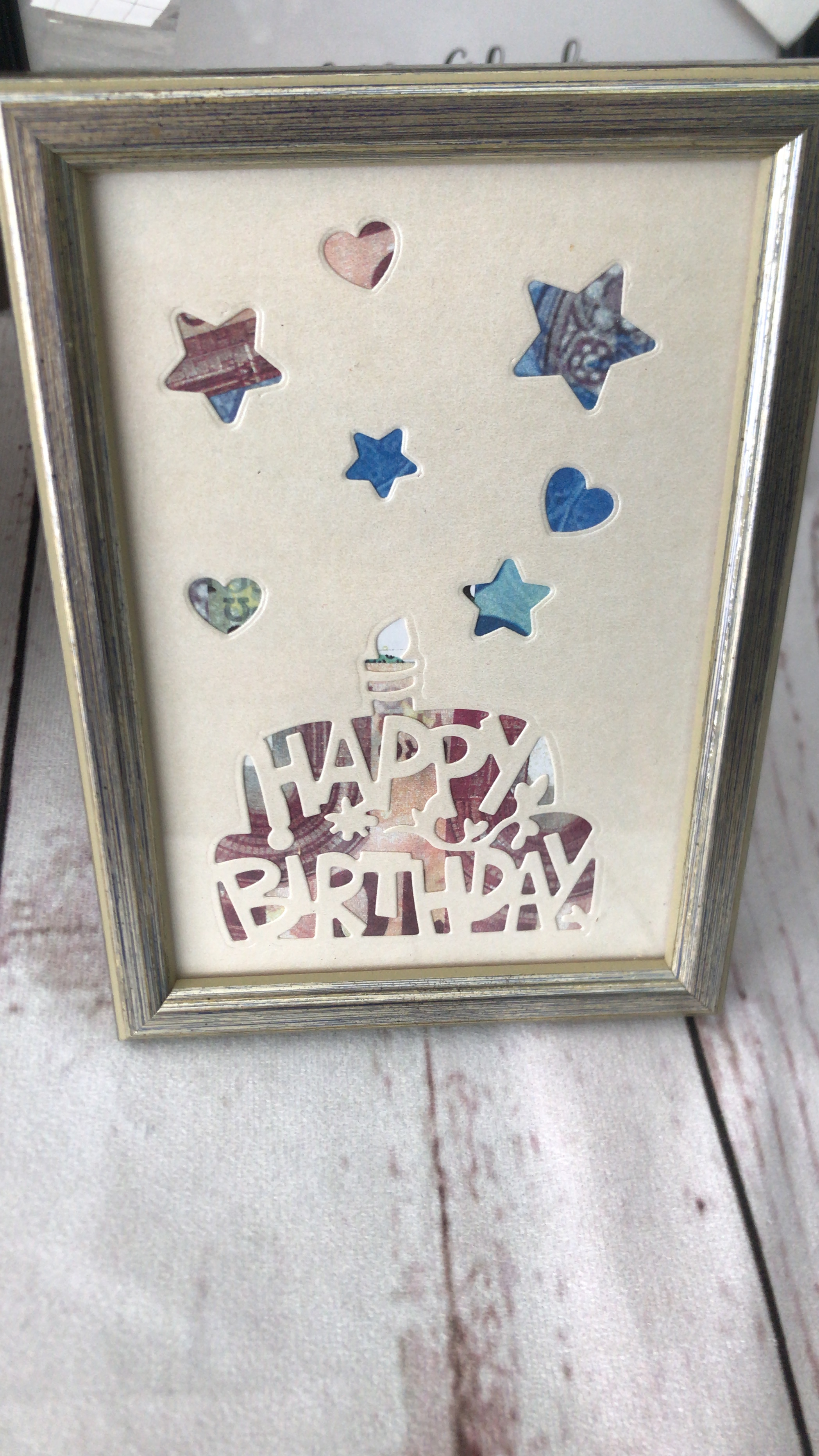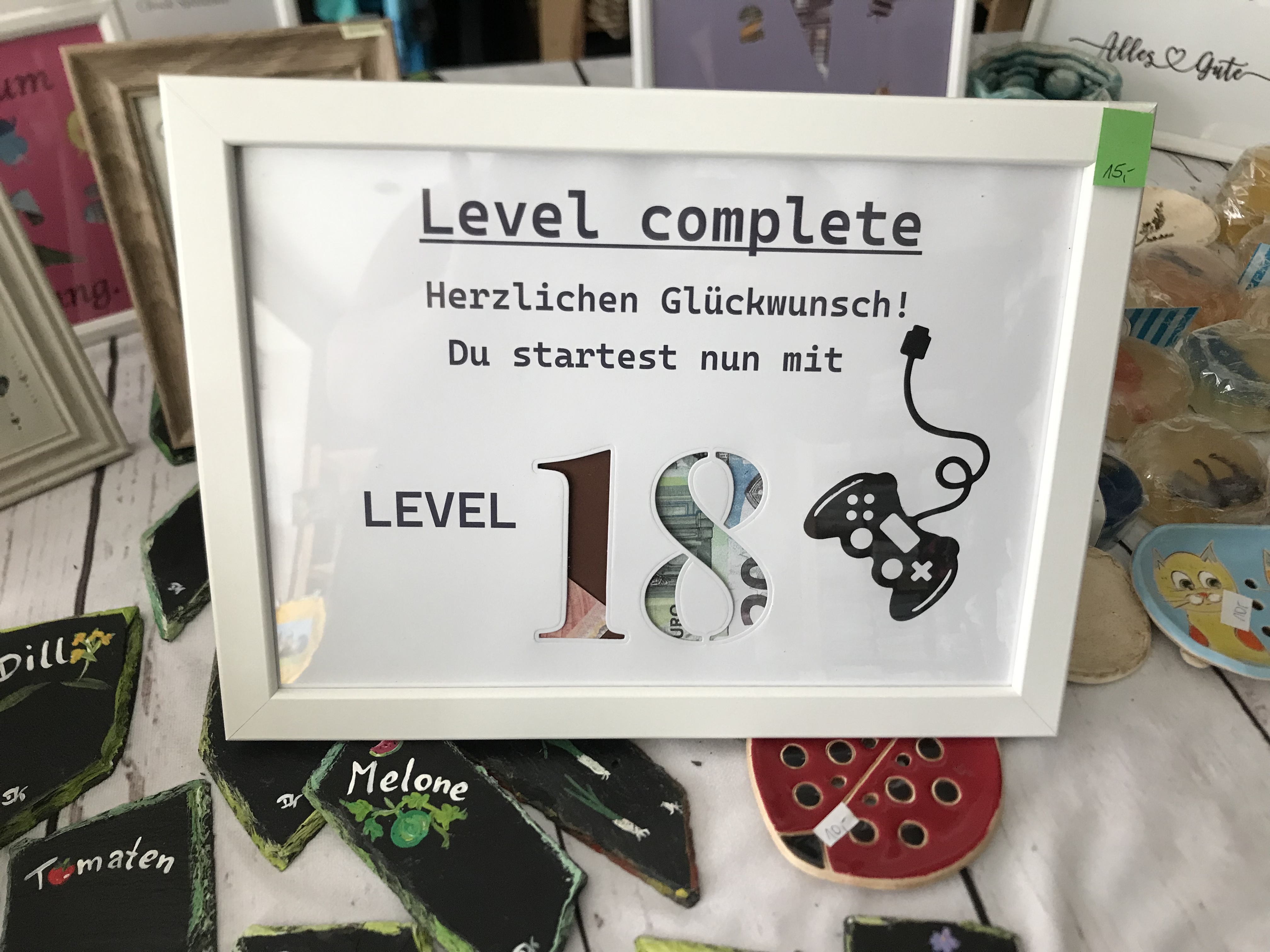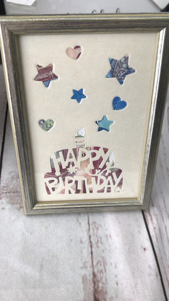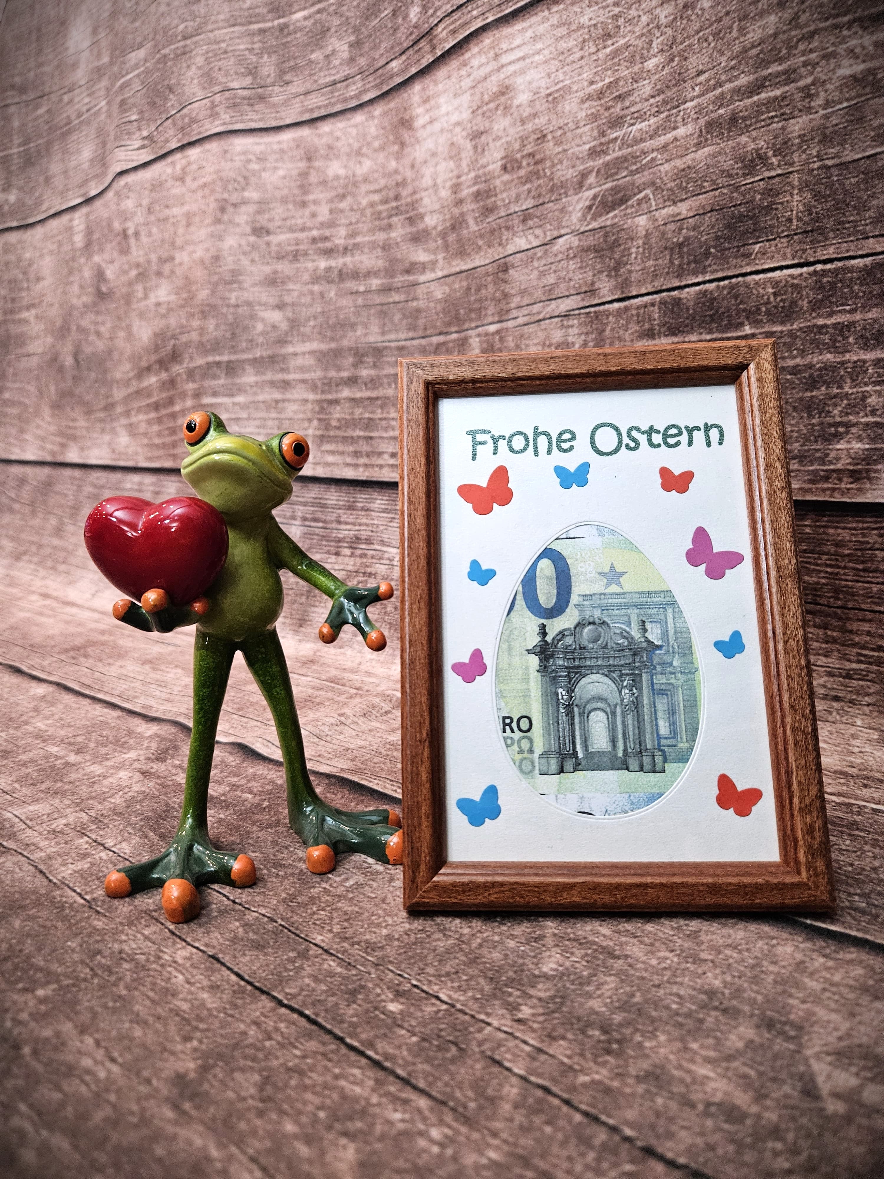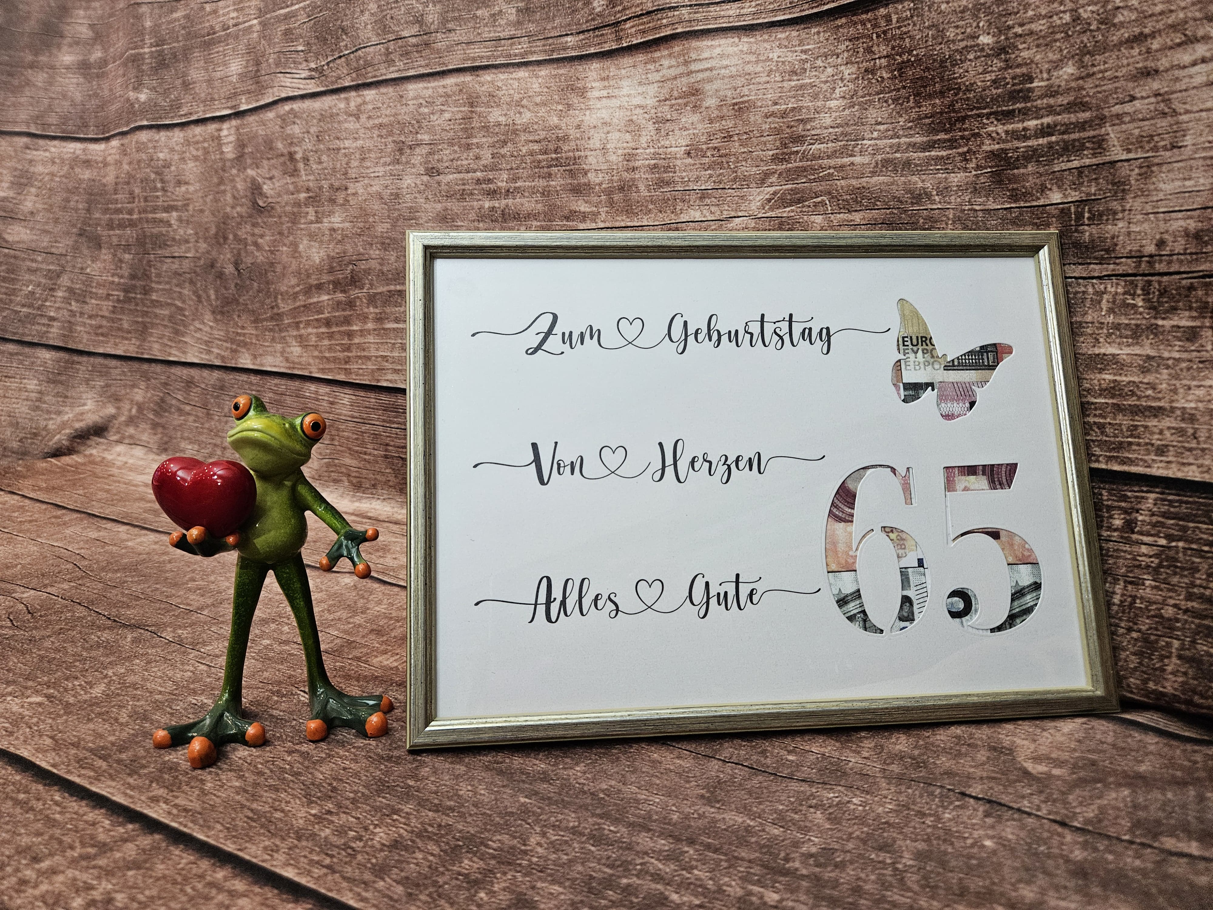 Den Bilderrahmen kann die beschenkte Person später mit einem Bild bestücken.