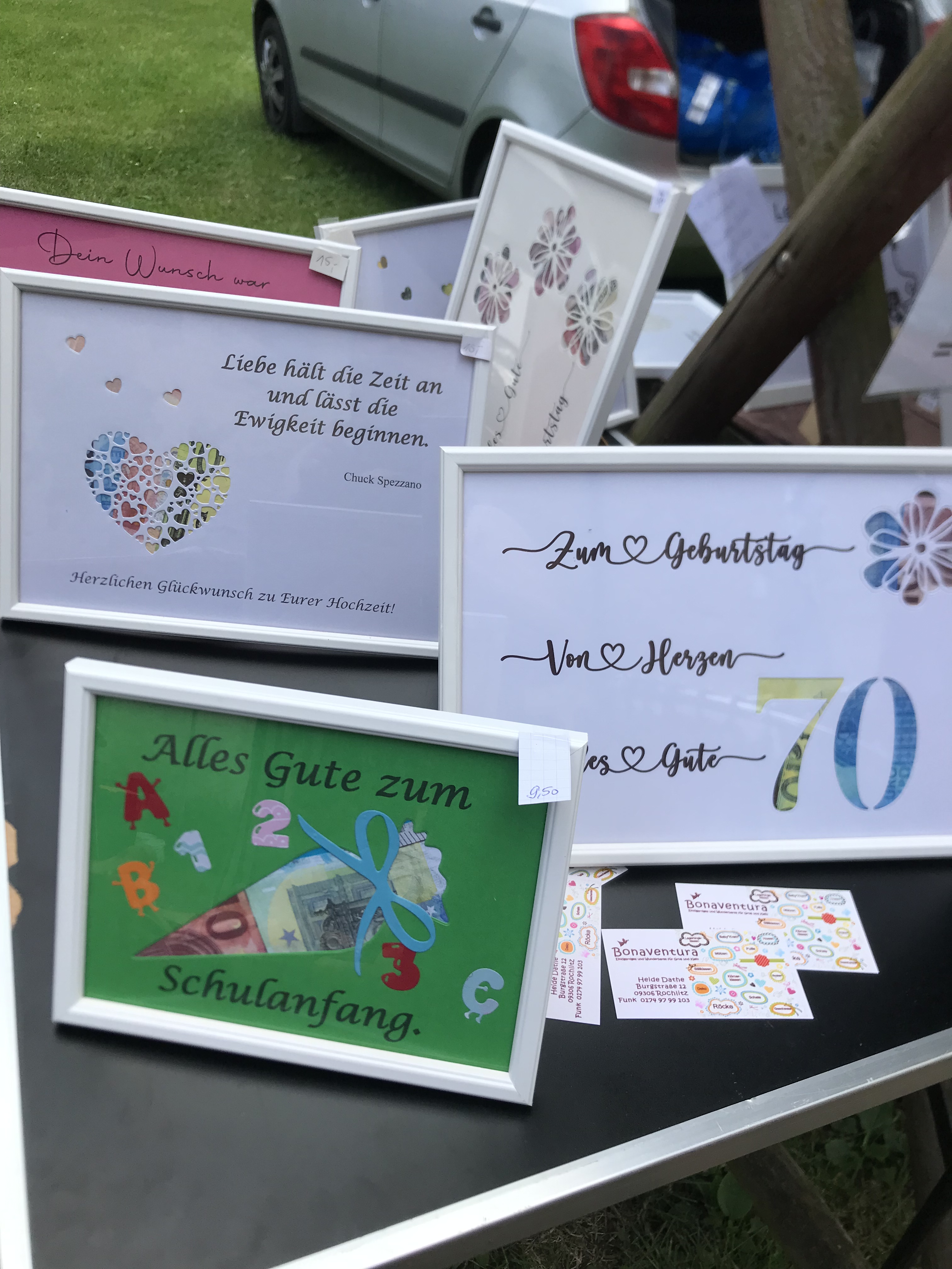 Ich halte im Laden immer eine kleine Auswahl zu vielen Themen bereit. Wenn es ein bestimmter Text zu einem bestimmten Anlass und mit einem bestimmten Motiv sein soll, so kann man immer bestellen. BEACHTE bitte: Bei Bestellung bitte ich um rechtzeitige Bestellung, d.h. mindestens 3 Wochen Vorlauf.